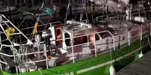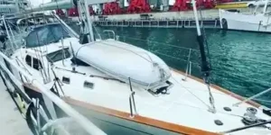 Yacht delivery solutions loaded this yacht onto a ship for the trip to Europe