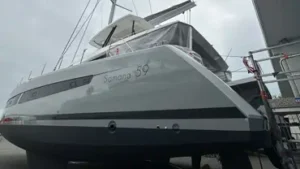 A brand new Fountaine Pajot 59 in La Rochelle for delivery to the Caribbean